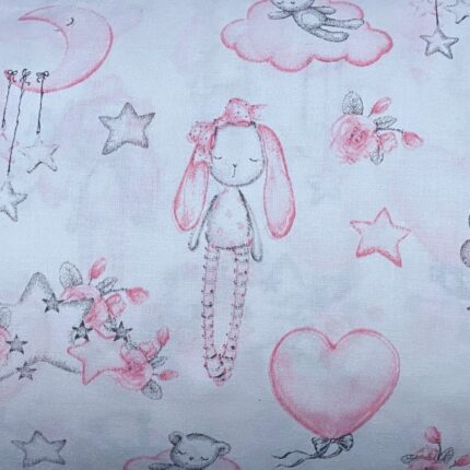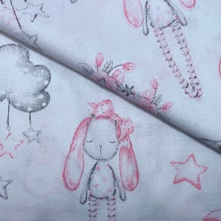 Tkanina bawełna kolor biały króliki 125 g/m2