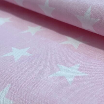 Tkanina bawełna kolor różowy w gwiazdki białe 125 g/m2