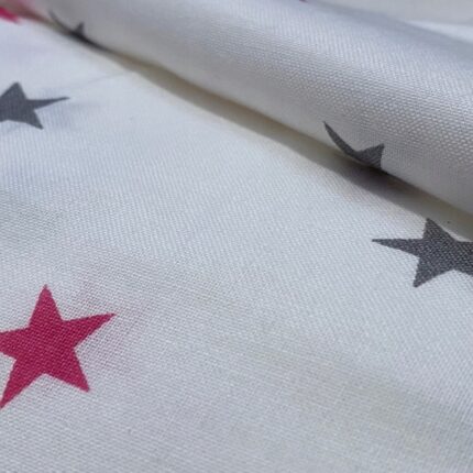 Tkanina bawełna kolor biały w gwiazdki szaro-różowe 125 g/m2