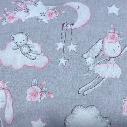 Tkanina bawełna kolor szary króliki 125 g/m2